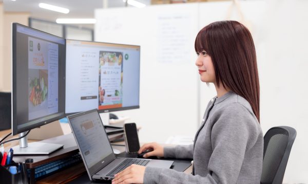 エクネス株式会社でフードロス事業部に所属する黒川さんは入社1年目。同部では規格外の野菜や果物を全国の農家などから仕入れ、ネットで販売しており、黒川さんは広報を担当しています。SNS発信や企画立案、メルマガ作成などを手がけ、日々ユーザーとのコミュニケーション方法を模索しているといいます。「ただ情報を発信するだけでなく、投稿を見たユーザーが思わず反応したくなるような情報を届けることをモットーにしています」とのこと。ユーザーとの信頼関係を深めるため、届いたコメントやDMには定型文ではなく、一つひとつに人間味のある言葉で返信するよう心がけているそうです。